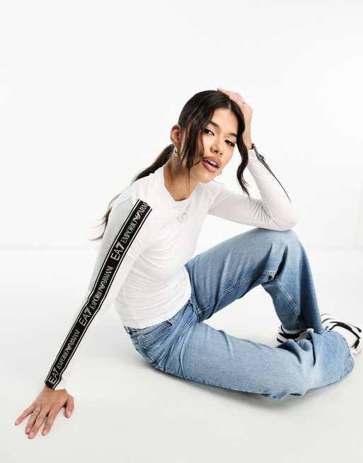 EA7 - T-shirt manches longues avec bande à logo - Blanc