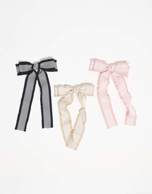 Exclusivité Easilocks X ASOS - Lot de 3 pinces à cheveux avec nœuds - Vichy rose, noir et crème