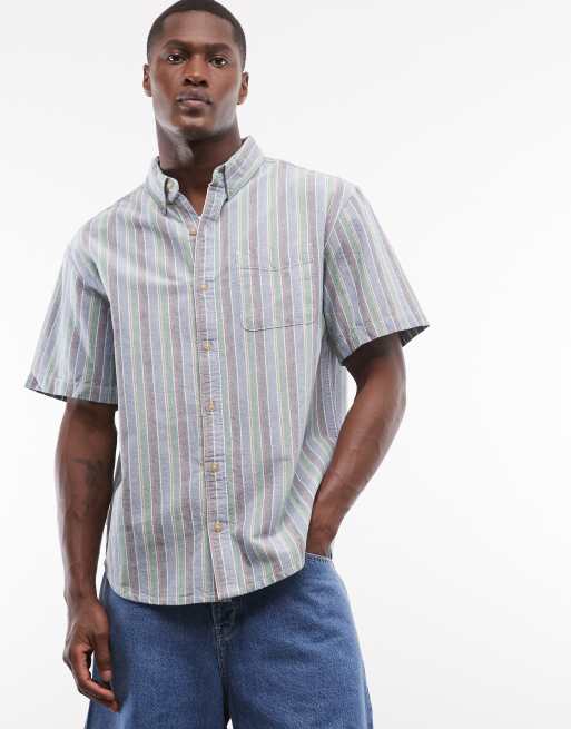 Element - Chemise Oxford boutonnée coupe classique à rayures - Bleu