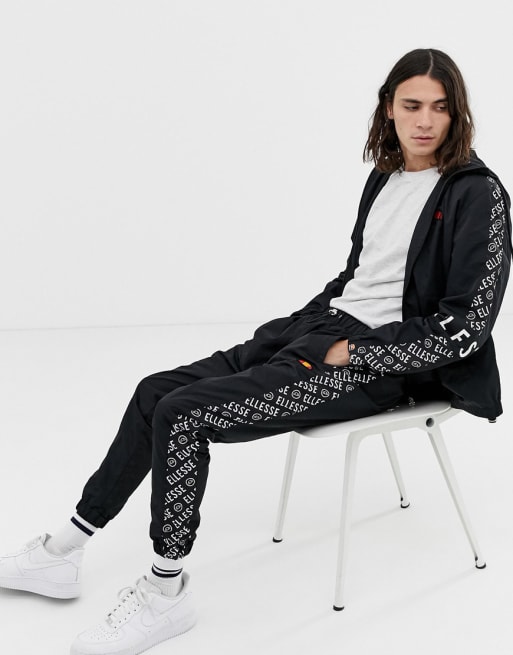 ellesse - Survêtement avec bandes à imprimé répété - Noir