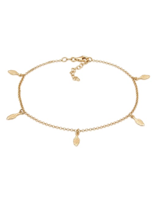 Elli - Bracelet de cheville en argent massif 925 avec pendentif plume - Doré