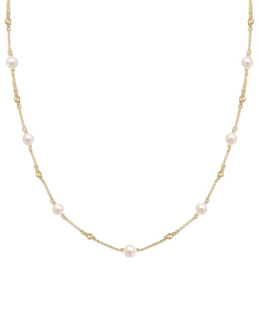 Elli - Collier en filigrane avec boules et perles de culture d'eau douce en argent massif 925 plaqué or - Doré