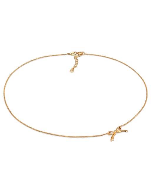 Elli - Collier pour femme avec ruban et fermoir à ressort en argent massif 925 style festival 36 cm - Doré