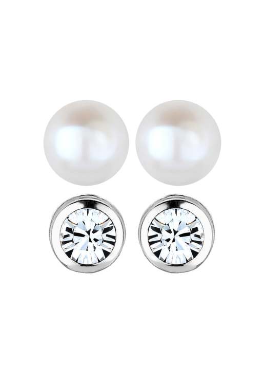 Elli - Lot de boucles d'oreilles basiques en argent sterling 925 avec perle d'eau douce et strass - Blanc