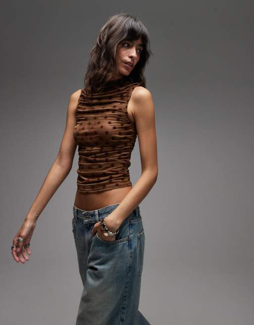 Emory Park - Top col montant transparent à pois - Marron