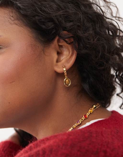 En Route - Devon - Créoles en plaqué or 18 carats avec pierre œil-de-tigre