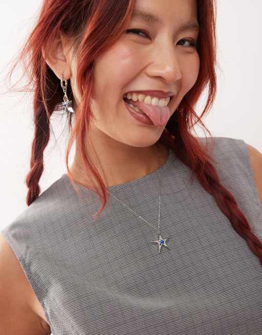 En Route - Lissie - Collier étoile avec pierre en zircon cubique bleue en plaqué platine