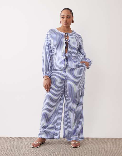 Esmée Curve - Ensemble de plage à rayures et liens noués à l'avant - Bleu et blanc