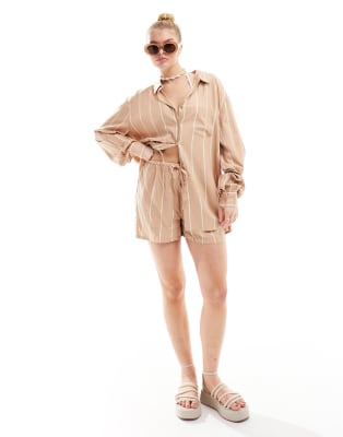 Esmée - Ensemble de plage rayé - Beige et blanc