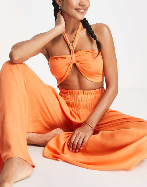 Esmee - Exclusivité - Crop top d'ensemble de plage dos nu avec nœud sur le devant - Orange