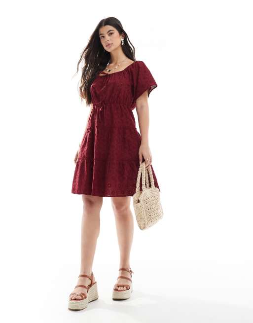 Exclusivité - Esmée - Robe courte de plage à manches bouffantes - Rouge cerise