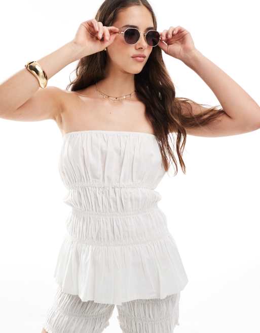Exclusivité - Esmée - Top bandeau froncé de plage - Blanc
