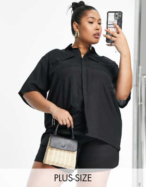 Extro & Vert Plus - Chemise utilitaire d'ensemble effet lin - Noir