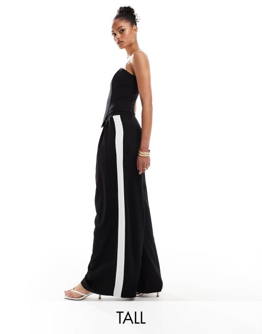 Extro & Vert Tall - Pantalon palazzo d'ensemble plissé à taille haute - Noir et blanc