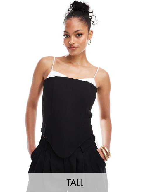 Extro & Vert Tall - Top corset d'ensemble avec détail soutien-gorge - Noir et blanc