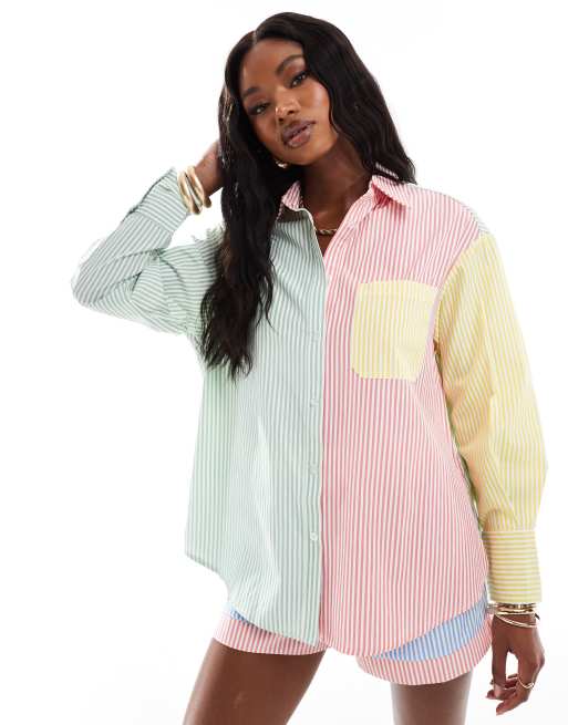 Extro & Vert - Chemise d'ensemble effet patchwork à rayures - Pastel