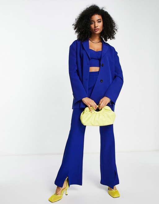 Extro & Vert - Ensemble avec brassière courte, blazer ultra souple et pantalon évasé - Cobalt