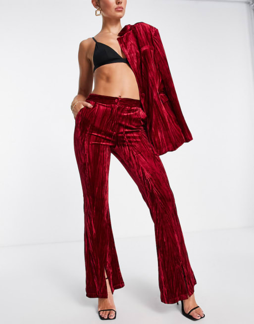 Extro & Vert - Ensemble blazer et pantalon en velours - Rouge rubis