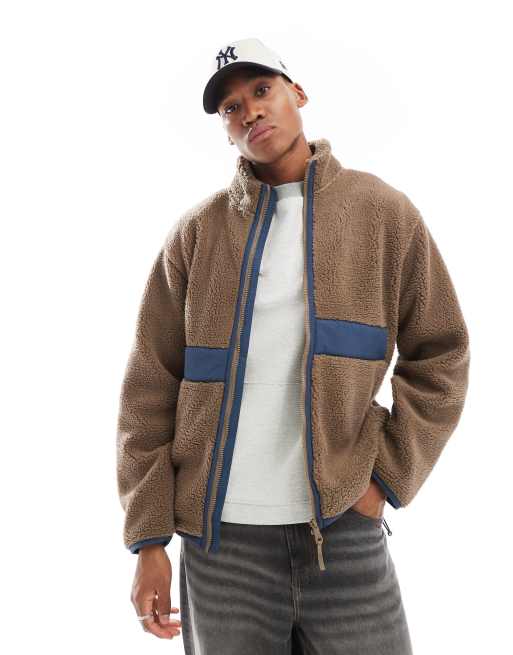 Farah - Elias - Veste zippée en polaire avec empiècements bleus - Gris champignon