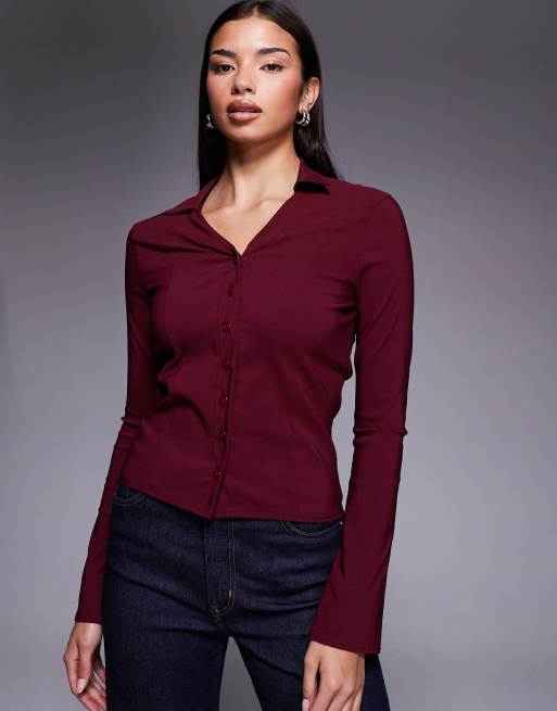 Exclusivité - Fashionkilla - Chemise ajustée en bengaline à manches évasées - Bordeaux