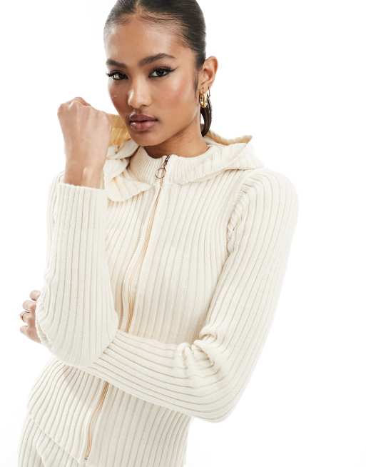 Fashionkilla - Pull à capuche d'ensemble en maille à fermeture éclair - Crème