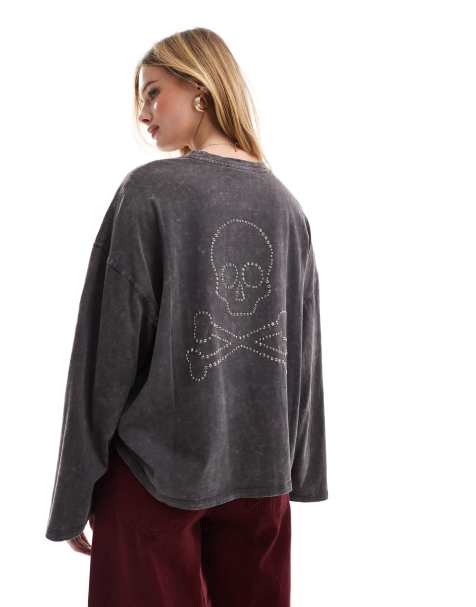 PLUS DE COULEURSHollister - Top à épaules dénudées et imprimé graphique - Gris