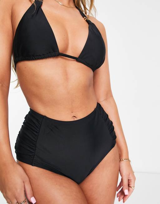 Figleaves - Bas de bikini taille haute avec empiècements froncés - Noir
