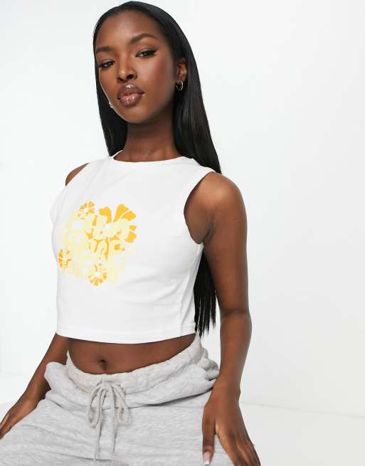 Fila - Crop top à imprimé style années 60 - Blanc et jaune