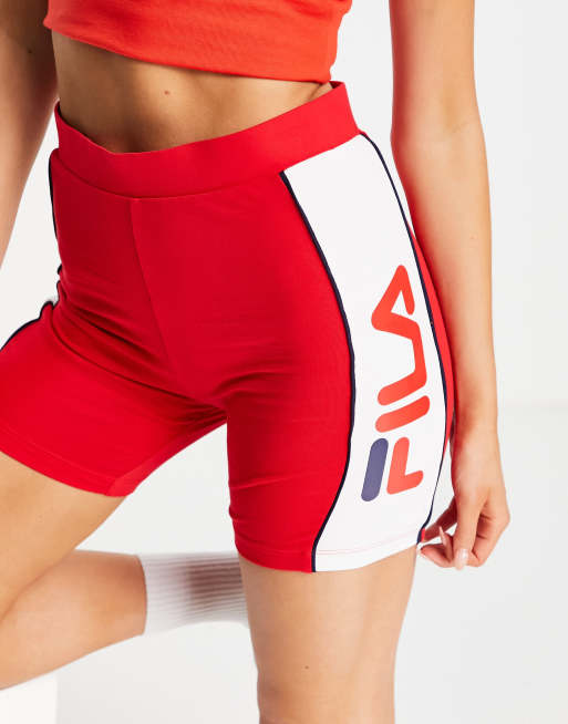 Fila - Short legging avec grand logo - Rouge et blanc