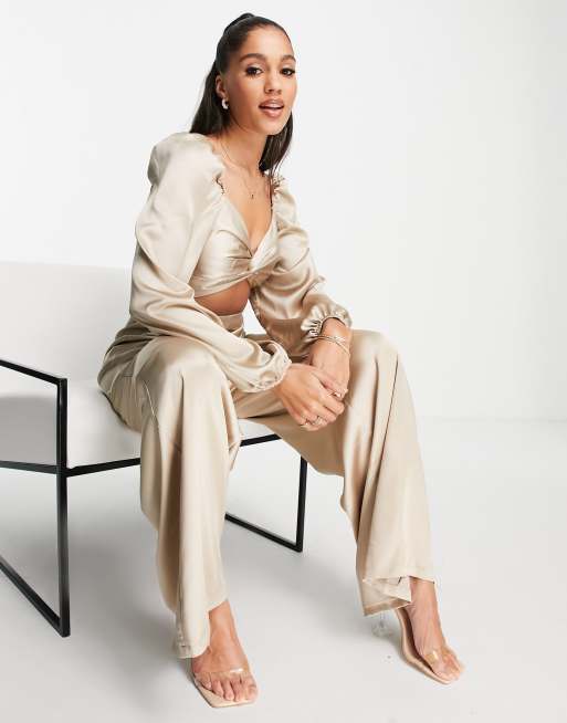 First Distraction The Label - Combinaison satinée effet torsadé sur le devant à découpe - Fauve