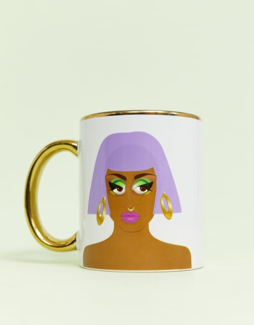 - Tasse personnalisée avec autocollants maquillage, perruques et accessoires