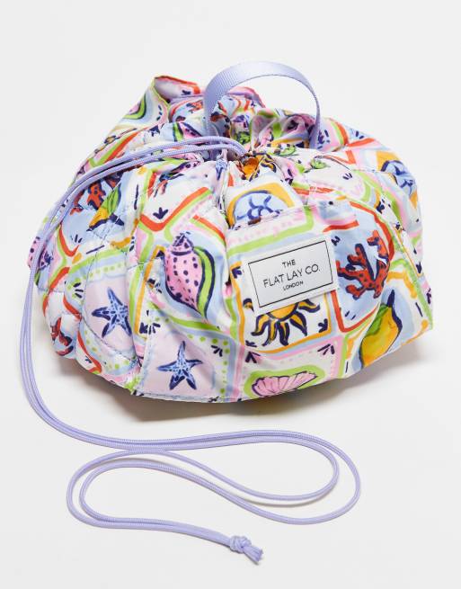Exclusivité The Flat Lay Co. x ASOS - Trousse à maquillage avec cordon de serrage et motif Summer Tiles