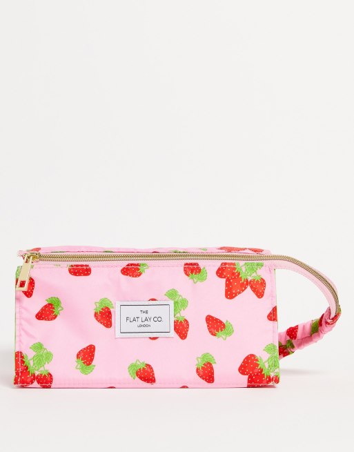 The Flat Lay Co. - Trousse de maquillage imprimé fraises et vichy vert