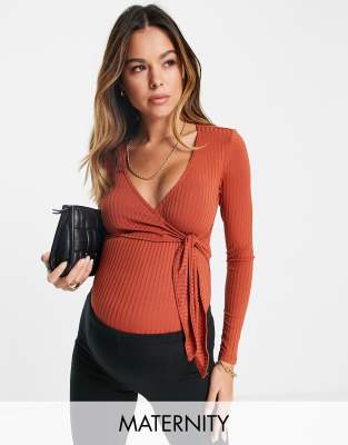 Flounce London Maternity - Body cache-cœur côtelé style ballerine - Rouille