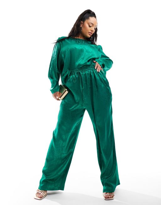 Flounce London Plus - Pantalon d'ensemble fluide en satin - Vert émeraude