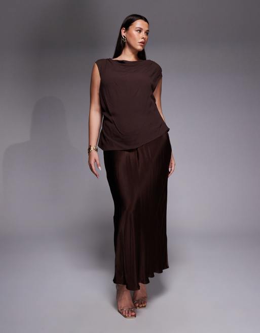 Forever New Petite - Robe longue nuisette 2-en-1 avec top superposé - Chocolat