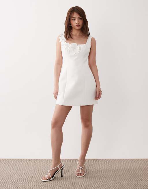 Forever New Petite - Robe de mariée courte à détail fleurs - Blanc