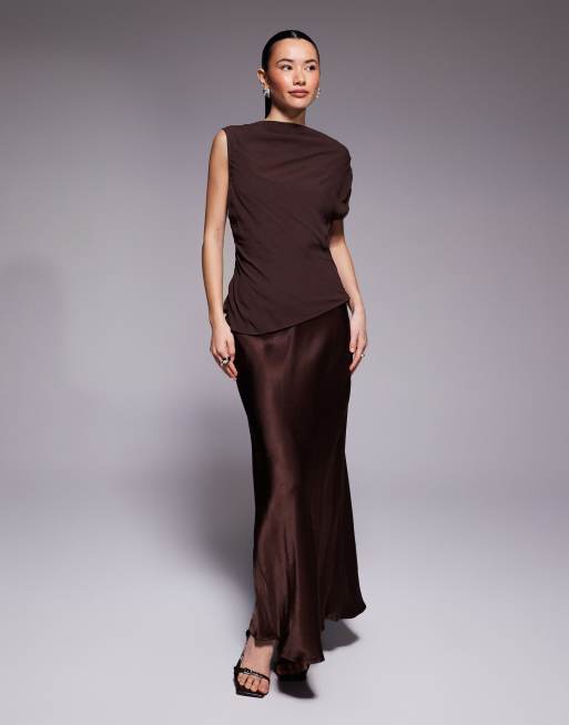 Forever New Petite - Robe longue nuisette 2-en-1 avec top superposé - Chocolat