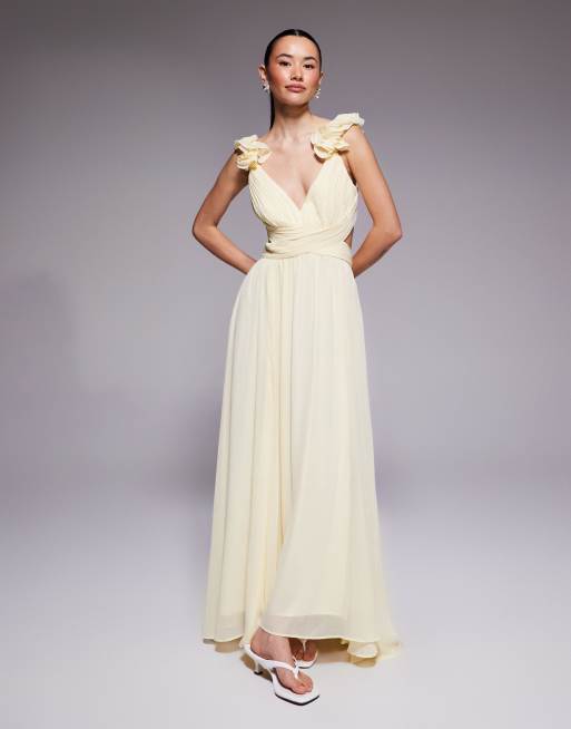 Forever New Petite - Robe longueur mollet à épaules volantées - Jaune