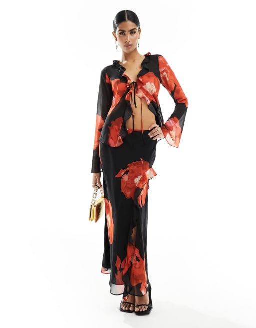 Forever New - Ensemble transparent avec jupe et top à imprimé fleuri - Rouge
