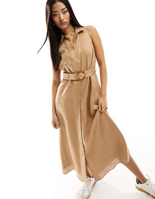 Forever New - Robe chemise ceinturée sans manches en lin - Marron