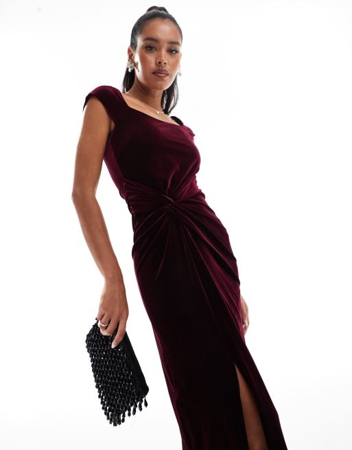 Forever New - Robe corset structurée longueur mollet en velours - Bordeaux