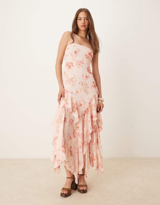 Forever New - Robe longue à volants et imprimé fleuri - Abricot