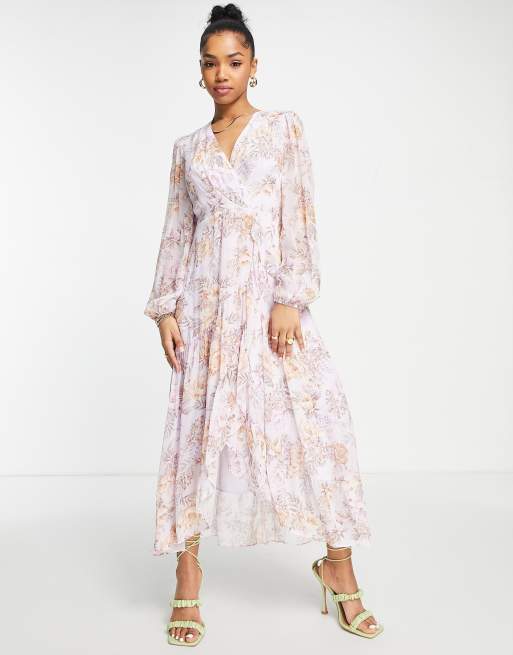 Forever New - Robe longue asymétrique à volants - Violet fleuri