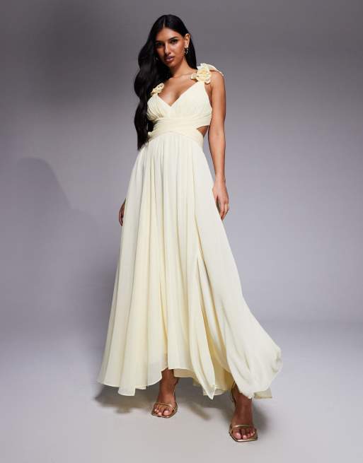 Forever New - Robe longue en mousseline à épaules volantées - Citron