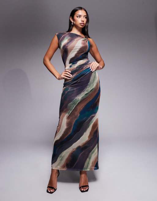 Forever New - Robe longue en tulle à imprimé abstrait avec nœud sur le devant - Neutre