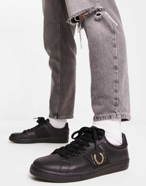 Fred Perry - B721 - Baskets en cuir et piqué - Noir