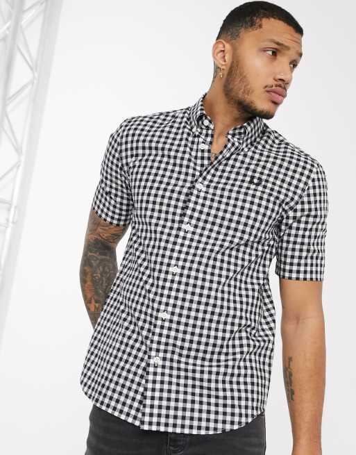 Fred Perry - Chemise à carreaux vichy et manches courtes - Noir et blanc