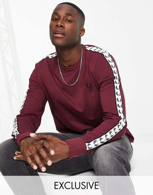Fred Perry - Exclusivité ASOS - Top manches longues à bandes - Bordeaux