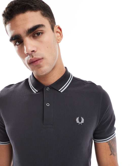 Fred Perry - Polo avec bordures à double rayure - Gris foncé